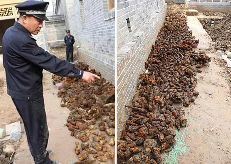 Hơn 3.000 quả bom, đạn chưa nổ có từ thời Thế chiến 2 đã được đào lên trong sân một ngôi nhà ở Trung Quốc.