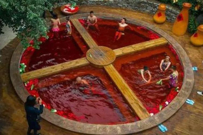Một bể bơi ở Trùng Khánh (Trung Quốc) được thiết kế giống hệt nồi lẩu. Thậm chí, nước trong bể còn có mùi cay, đem đến cho du khách trải nghiệm thú vị.