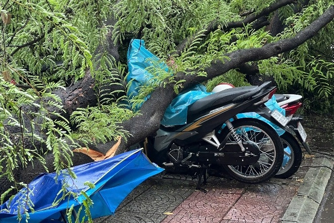 Cây đổ đè 5 xe máy ở trung tâm TPHCM
