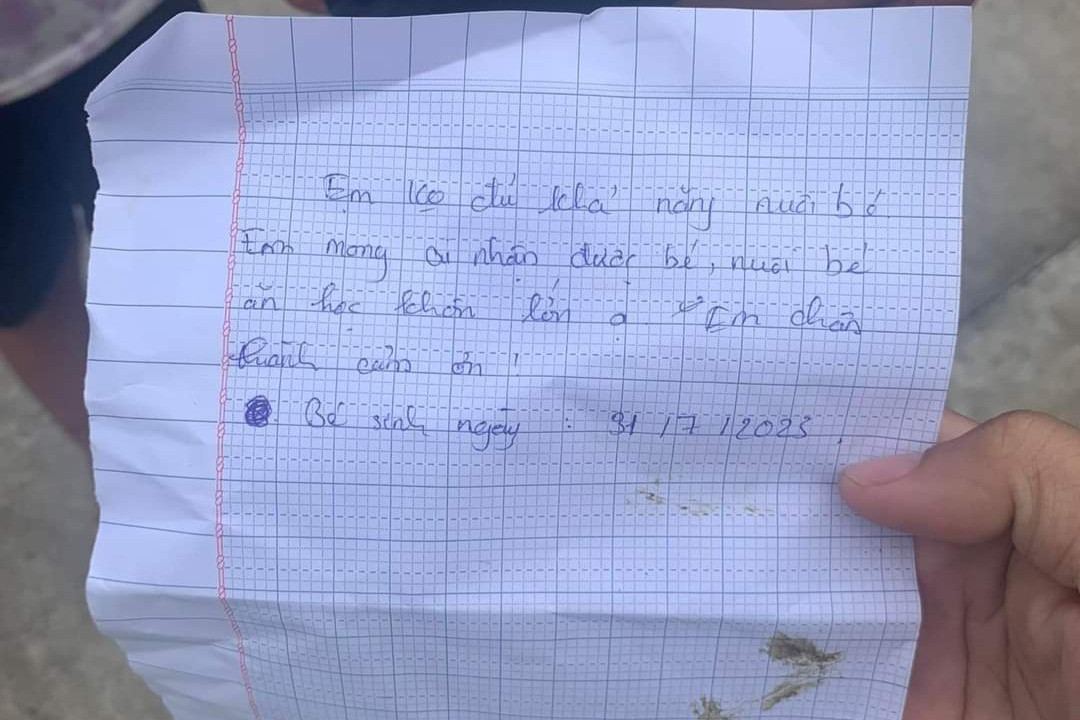 Trong thùng xốp đựng cháu gái có bức thư viết tay với nội dung: “Em không đủ khả năng nuôi bé. Em mong ai nhận được bé, nuôi bé ăn học khôn lớn ạ. Em chân thành cảm ơn! Bé sinh ngày 31/7/2023”.