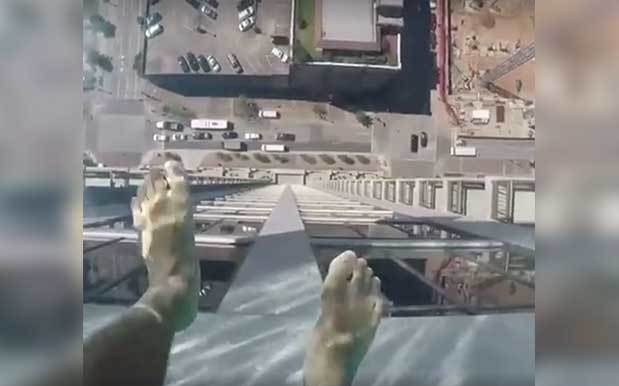 Rợn người bước trên bể bơi đáy kính, cách đất 152m
