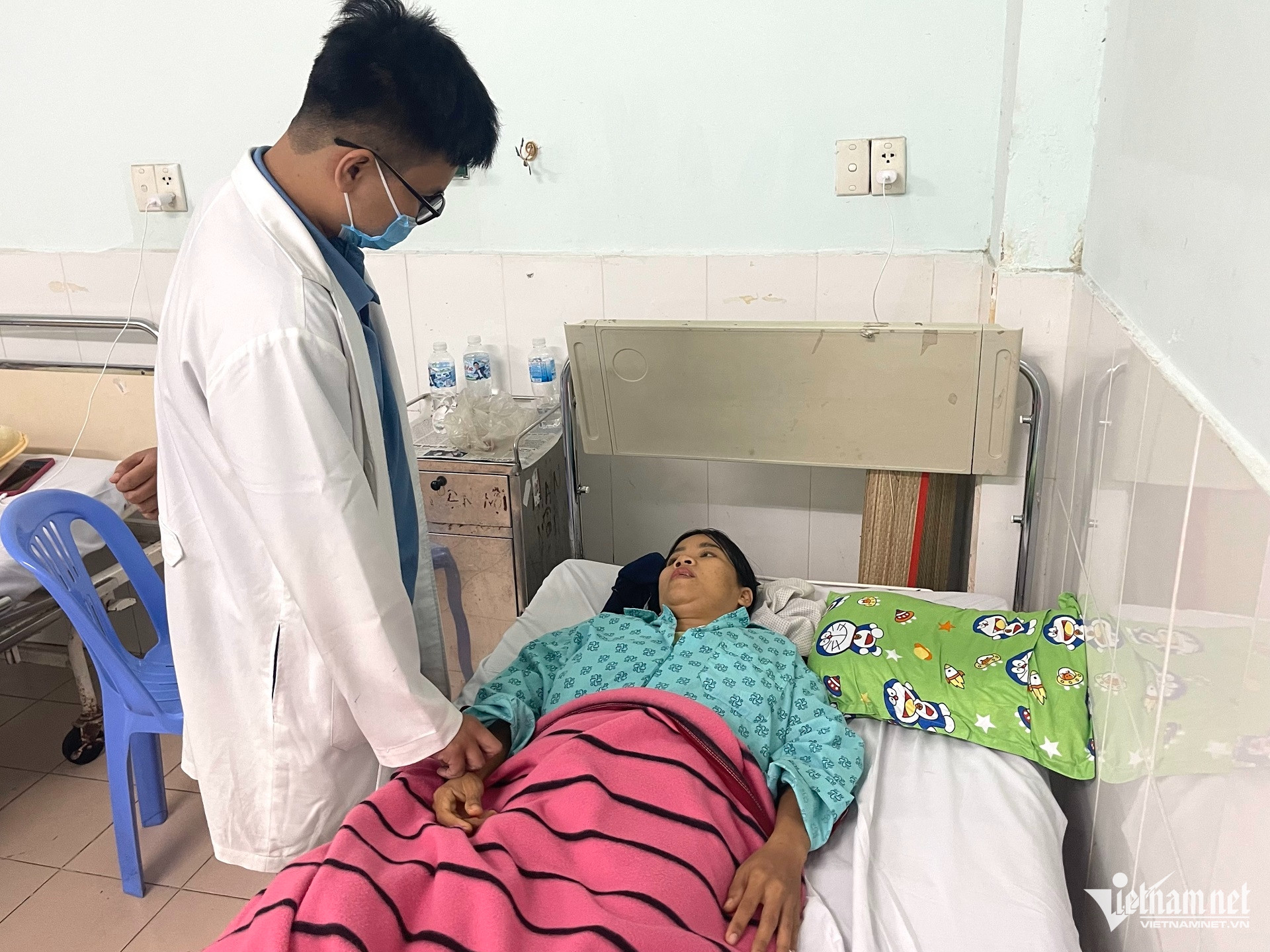 "Chồng tôi vừa phải lo chăm con, vừa chở tôi vào viện miết không đi làm được. Nghỉ nhiều quá nên chỗ anh làm thuê đã tuyển thợ mới. Không có công việc ổn định, thu nhập bấp bênh. Túng thiếu thì lại vay mượn bên ngoài, anh em họ hàng ai cũng nghèo, không ai có khả năng giúp được", chị Yến buồn bã kể.