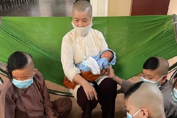 | Các sư cô chùa Chánh Giác đang tạm thời chăm sóc và nuôi dưỡng cháu bé. Ảnh: Nguyên Ân |