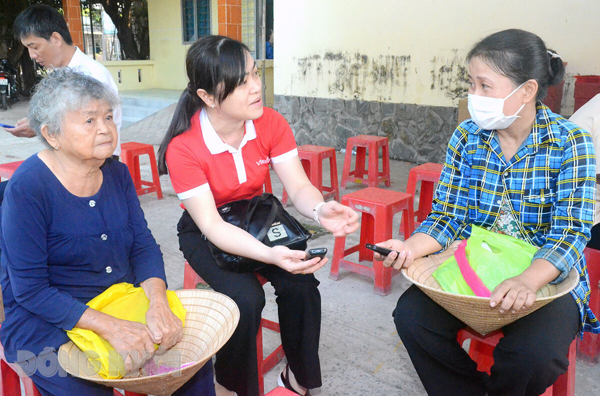 Viettel Bến Tre hỗ trợ người dân địa phương đổi điện thoại cho người dùng từ 2G lên 4G. Ảnh: Thanh Đồng