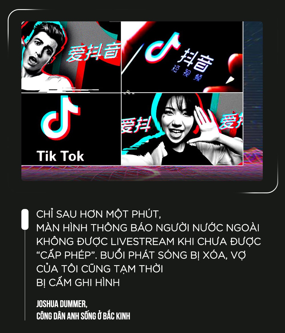 "Chỉ sau hơn một phút, màn hình thông báo người nước ngoài không được livestream khi chưa được “cấp phép”. Buổi phát sóng bị xóa, vợ của tôi cũng tạm thời bị cấm ghi hình".