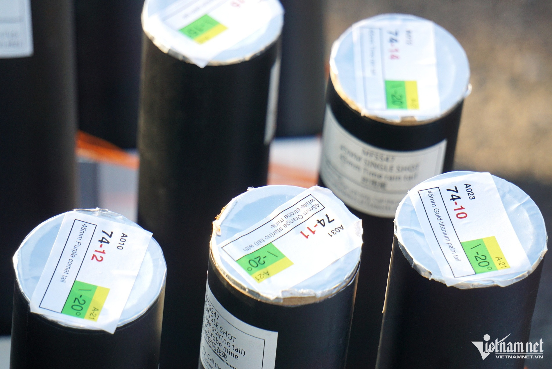Bên trong trận địa pháo hoa rộng hàng nghìn m2 - đối diện với khán đài bên đường Trần Hưng Đạo - các loại pháo tầm cao đã được lắp vào nòng.