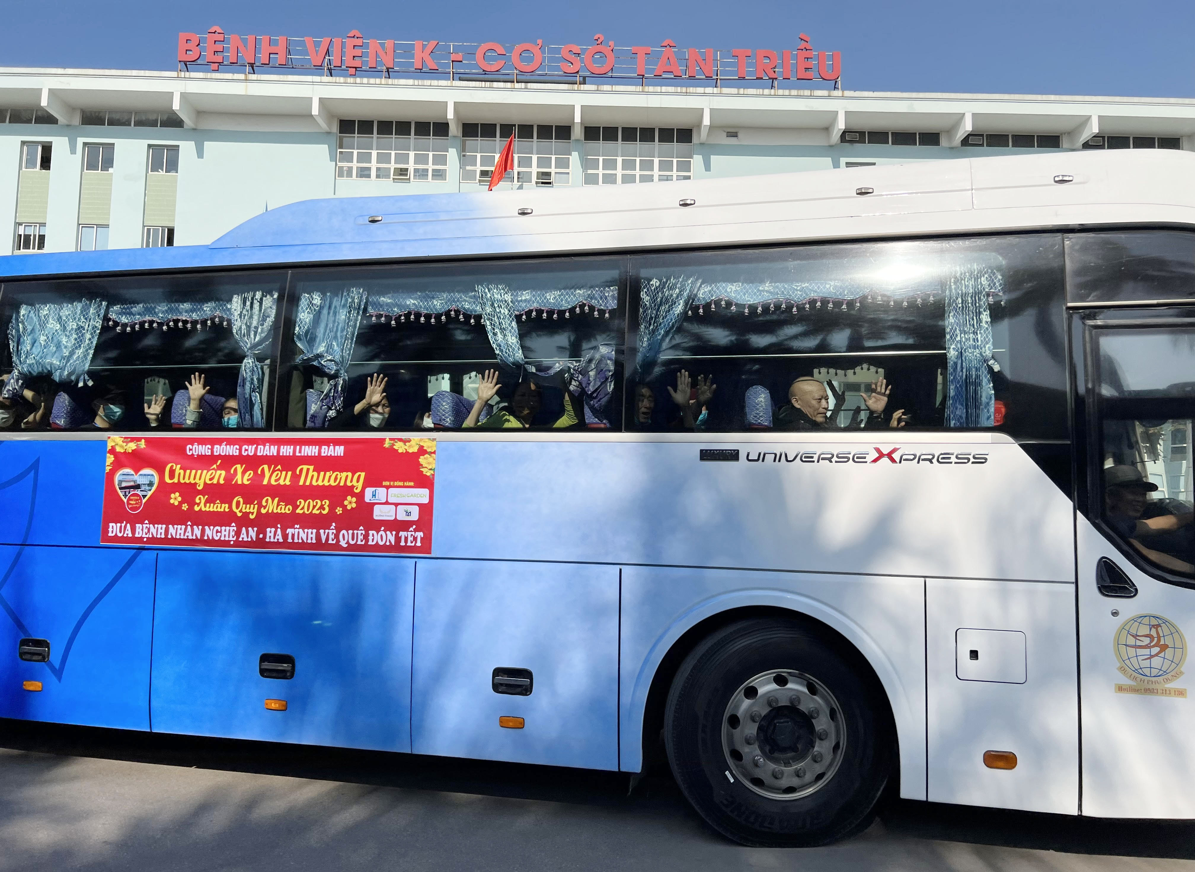 Gần 30 chuyến xe về 9 tuyến các tỉnh Hải Dương - Hải Phòng; Thái Bình - Nam Định; Phú Thọ - Tuyên Quang; Thái Nguyên - Bắc Cạn; Hòa Bình - Sơn La; Yên Bái - Lào Cai; Bắc Ninh - Bắc Giang - Lạng Sơn; Ninh Bình - Thanh Hóa; Nghệ An - Hà Tĩnh đã lần lượt đưa những người bệnh về đón Tết ở quê nhà.