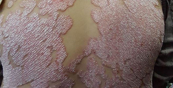 Bác sĩ cho biết, bệnh nhân có tình trạng vảy nến bùng phát toàn cơ thể rất mạnh. Tâm lý chán nản, buồn bã sau chia tay chính là nguyên nhân làm “khởi động” bệnh.