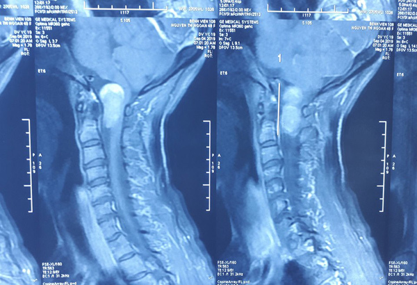 - Lưng anh Q. bị cong gập như sâu đo, đầu cúi sát đất khiến anh đi lại vô cùng khó khăn, tầm nhìn chỉ còn 1-2 m.