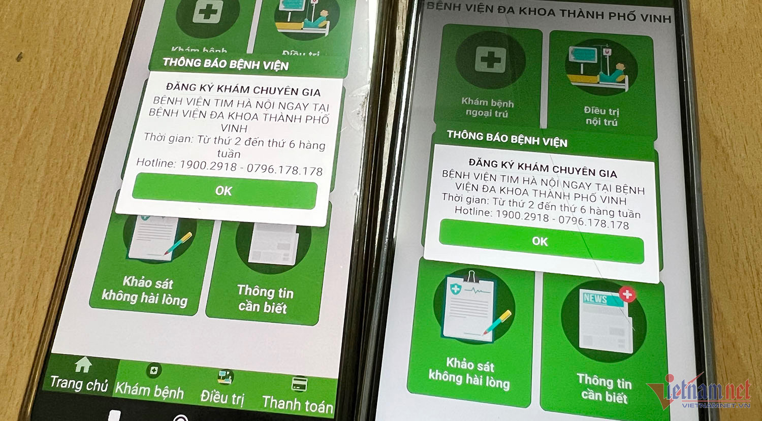 Trao đổi với VietNamNet, bà Thái Thị Mỹ Hạnh - Trưởng Phòng công tác xã hội (Bệnh viện Đa khoa thành phố Vinh) cho biết, từ năm 2020, bệnh viện thực hiện chuyển đổi số, áp dụng App “BVTP VINH”.