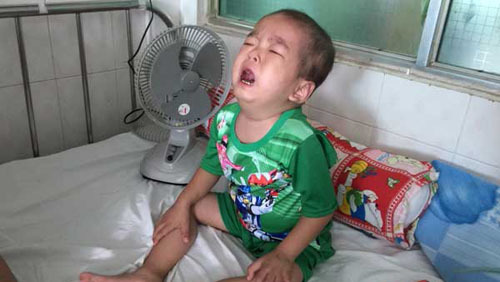- Cô con gái 3 tuổi đau đớn quằn quại cứ lật qua bên này lại lật lại bên kia. Lúc cô bé chỉ đau ở bụng, lúc chỉ lên đầu rồi lại chỉ xuống chân.