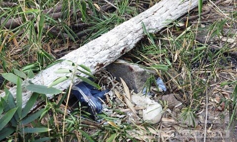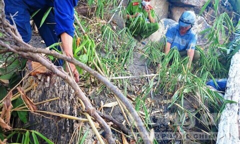 Xác chết bị thân cây lớn đè lên. |