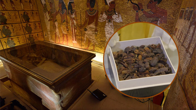 Ngoài vô số cổ vật quý giá, bên trong lăng mộ Pharaoh Tutankhamun, còn gọi là vua Tut, vị vua trẻ tuổi nổi tiếng nhất Ai Cập cổ đại, người ta còn tìm thấy rất nhiều đồ ăn, từ hành, tỏi, mứt chà là đến các loại thịt.