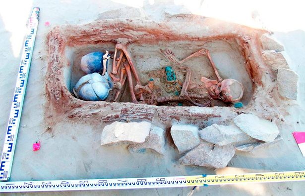 Những chuỗi hạt được tìm thấy trong quan tài đá.
