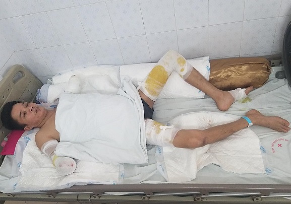Tại Viện Bỏng Quốc gia, bác sĩ xác định mức độ bỏng của anh trên 50%, hai cánh tay bị hoại tử hoàn toàn cứng đờ. Dù đã ra sức nỗ lực bảo tồn tay cho anh song do vết thương quá nặng, anh buộc lòng phải làm phẫu thuật cắt tay.