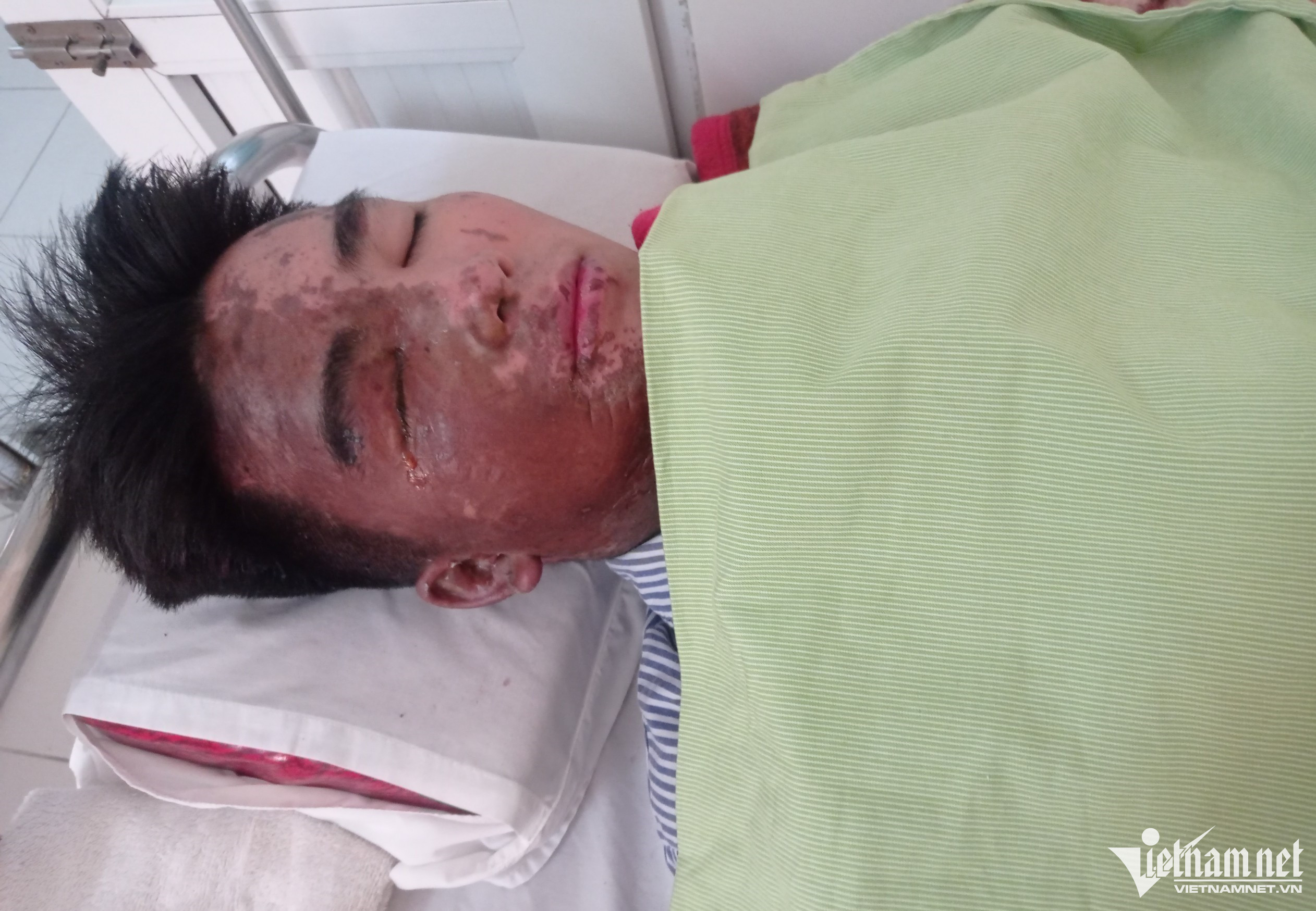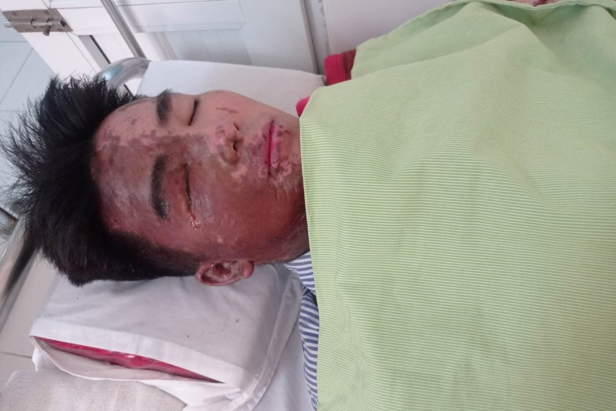Người dân sống gần đó vội vã đưa em vào bệnh viện cấp cứu trong tình trạng một phần khuôn mặt, cổ bị bỏng. Hiện tại mắt phải của em bỏng rất nặng. Bác sĩ cho biết Cường có khả năng mù vĩnh viễn do hoại tử và thủng giác mạc.