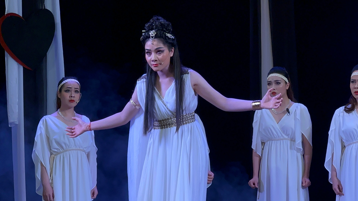 Đây là vở diễn mà tâm lý nhân vật đè nặng lên vai chính - nàng Mê-Đê (Như Quỳnh). Nếu ở bản dựng kịch nói, diễn viên sẽ đỡ áp lực hơn để dồn toàn bộ vào diễn xuất thì ở phiên bản cải lương, nghệ sĩ Như Quỳnh phải "phân thân" vừa ca vừa diễn.