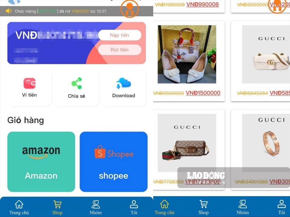 "Với công việc này, bên kia sẽ gửi cho tôi một đường link, đường link này là một sản phẩm có giá tiền ở trong đó. Tôi click vào đường link sau đó chuyển số tiền ghi sẵn trong đó vào một số tài khoản khác. Ví dụ món hàng có giá trị hơn 300.000 đồng thì tôi sẽ chuyển vào số tài khoản đó. Sau khi chuyển tiền xong từ 3-5 phút, họ đã hoàn tiền lại cho tôi, bao gồm tiền gốc và tiền hoa hồng, có món thì 5%, món 10%, món 12%...", H. nói.