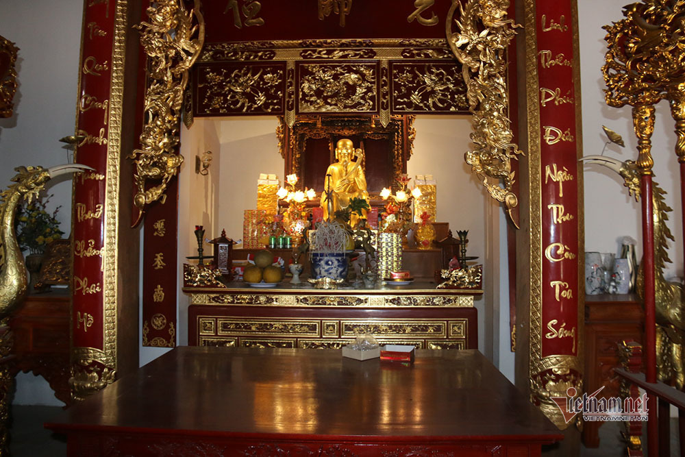 | Bức tượng tổ nghề Nguyễn Quý Trị dát vàng trong nhà thờ tổ ở làng Kiêu Kỵ. |