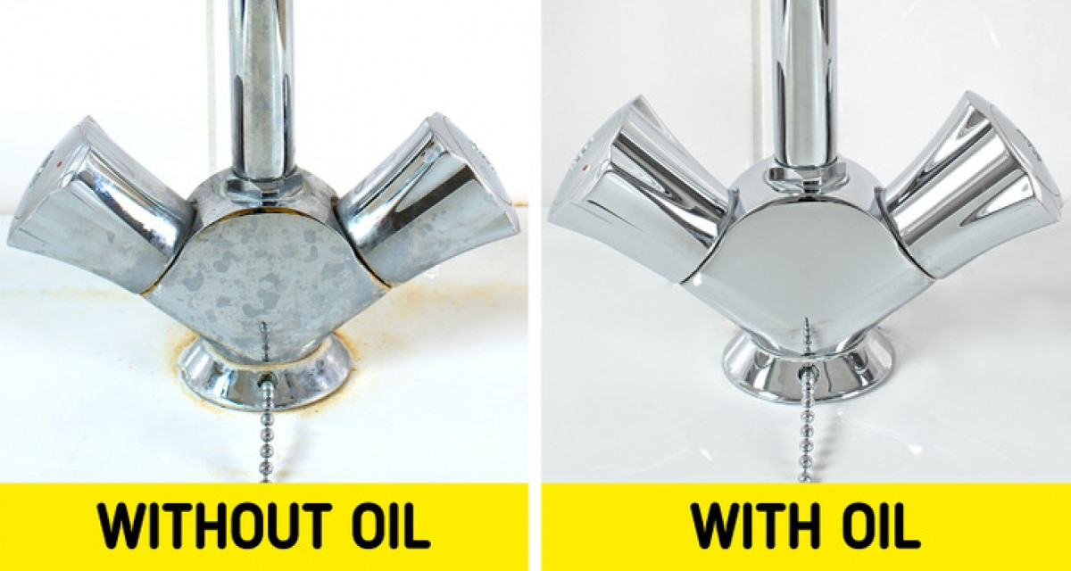 Cho một chút dầu vào một miếng vải và xoa lên đồ đạc, vòi hoa sen và thậm chí cả bồn cầu của bạn . Bằng cách này, bạn sẽ làm cho chúng bóng đẹp và loại bỏ dấu vân tay.