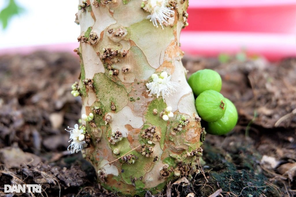 "Lúc đầu trồng thử, tôi tnuôi cây trong chậu, đợi khi có trái chín, tôi chừa lại ươm thêm cây con làm giống. Do diện tích vườn nhỏ nên tôi trồng xen nho thân gỗ với nhiều cây khác. Giống nho này cho trái quanh năm. Trái mọc chi chít từ gốc tới ngọn", ông Dũng cho biết.