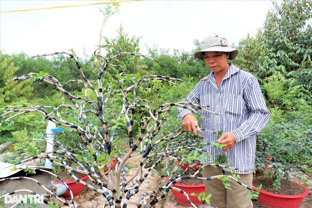 Ngoài bán cây giống ông Dũng còn tạo hình nho thân gỗ bonsai. Mặt hàng này hiện được tiêu thụ rất nhiều nhờ độc, lạ (Ảnh: Bảo Kỳ).