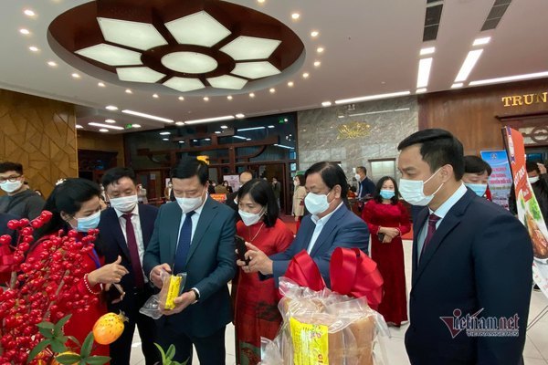 | Bộ trưởng Nông nghiệp và Phát triển nông thôn Lê Minh Hoan kiểm tra mã vạch trên sản phẩm của Hải Dương |
