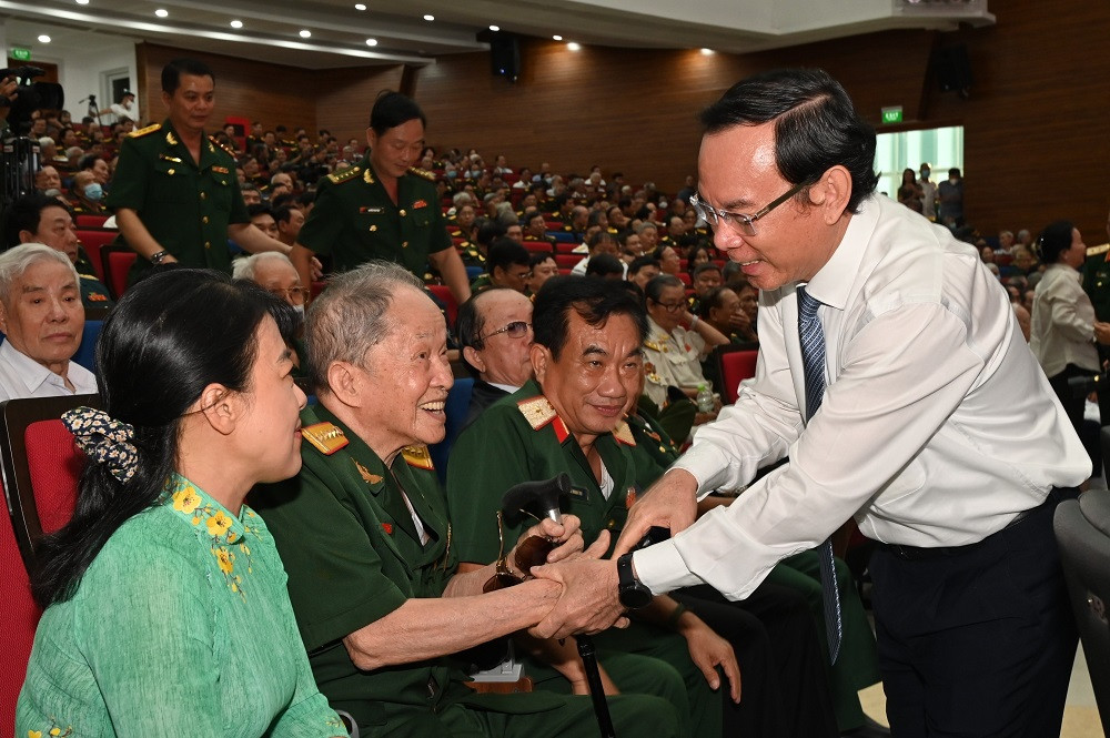 Chia sẻ với các tướng lĩnh, cán bộ nghỉ hưu, Bí thư Thành ủy TP.HCM Nguyễn Văn Nên nói, cuộc gặp mặt hôm nay để ôn lại truyền thống vẻ vang, nhìn về một thời hào hùng vô cùng oanh liệt nhưng cũng có nhiều đau thương, mất mát.