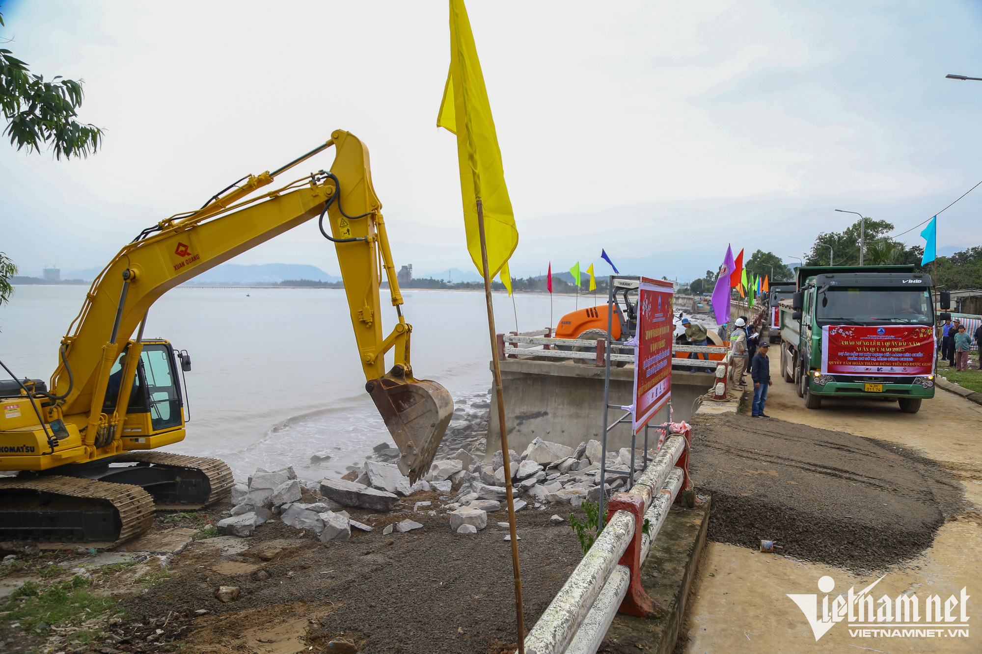 Tại lễ ra quân, ông Lê Thành Hưng, Giám đốc ban quản lý (BQL) các dự án đầu tư cơ sở hạ tầng ưu tiên TP Đà Nẵng cho biết, ngay sau khi khởi công dự án, BQL đã chỉ đạo liên danh nhà thầu phối hợp với Bộ TN&MT, Cục tác chiến Bộ Quốc phòng, Bộ NN&PTNT và các Bộ ngành liên quan hoàn thiện hồ sơ bàn giao khu vực biển.