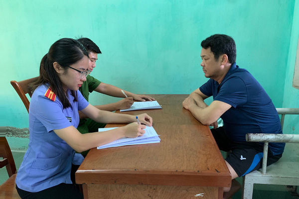 | Hai đối tượng cùng tang vật tại cơ quan điều tra |