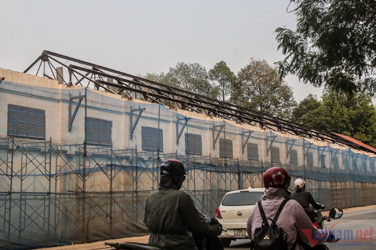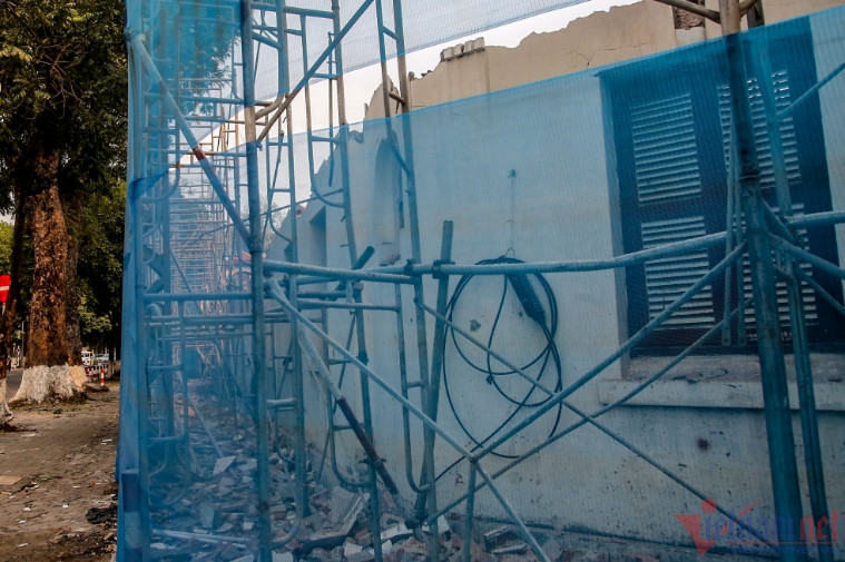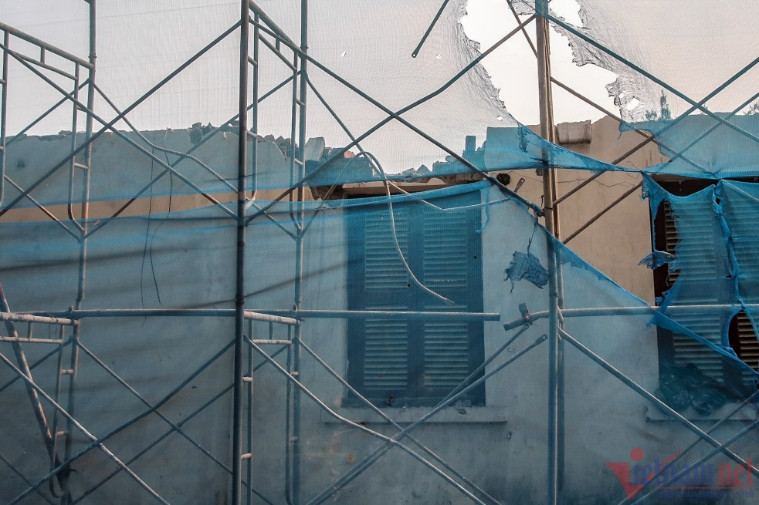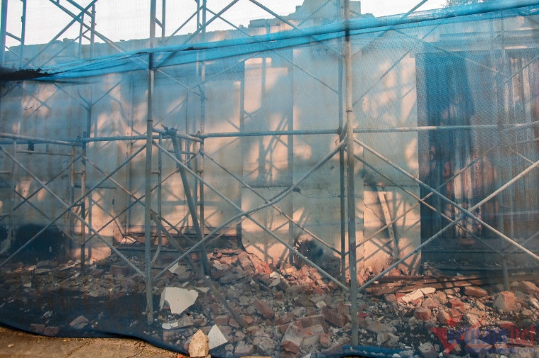 Ghi nhận của PV VietNamNet, trước khi bị “tuýt còi” công trình đã được phá dỡ gần hết, chỉ còn dãy nhà phía mặt phố Hùng Vương chưa bị tác động nhiều, cơ bản nguyên vẹn, bên trong công trình ngổn ngang chỉ còn đống gạch đá.