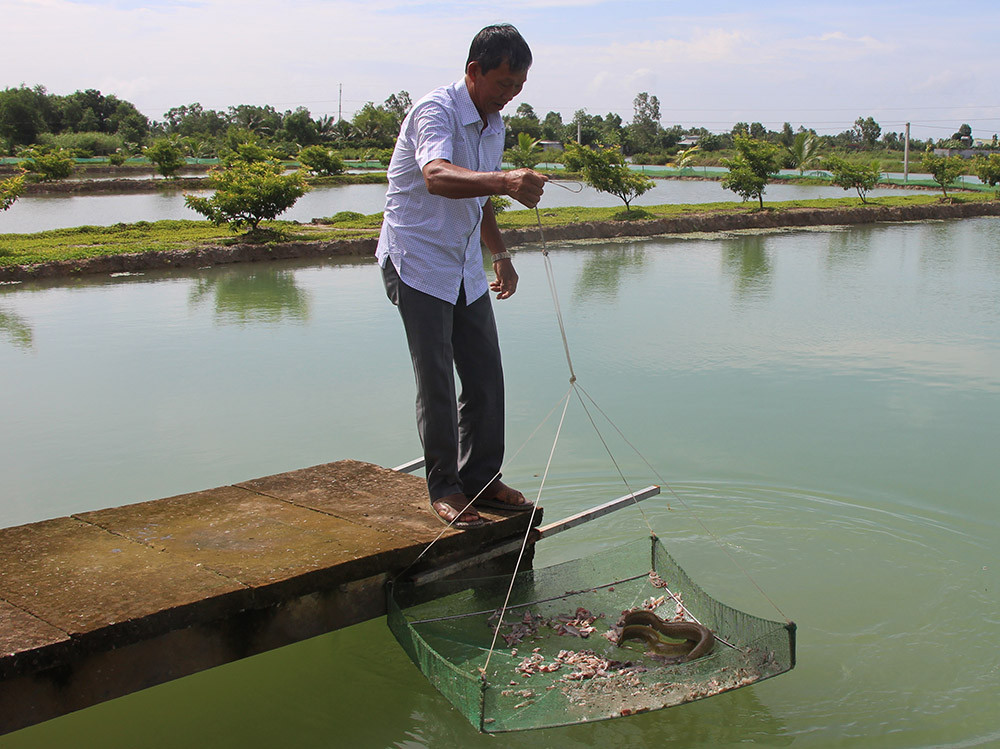Ban đầu, ông Ánh mua 20kg cá chình giống (loại 20 con/kg) từ Khánh Hòa về thả nuôi trong ao. Ông tự tay bắt cá, tép về làm thức ăn cho cá. “Thả nuôi cá chình, lòng tôi cũng thấp thởm, hồi hộp lắm vì sợ tới ngày cá chình lớn mà thương lái không mua là tiêu luôn”, ông Ánh kể.