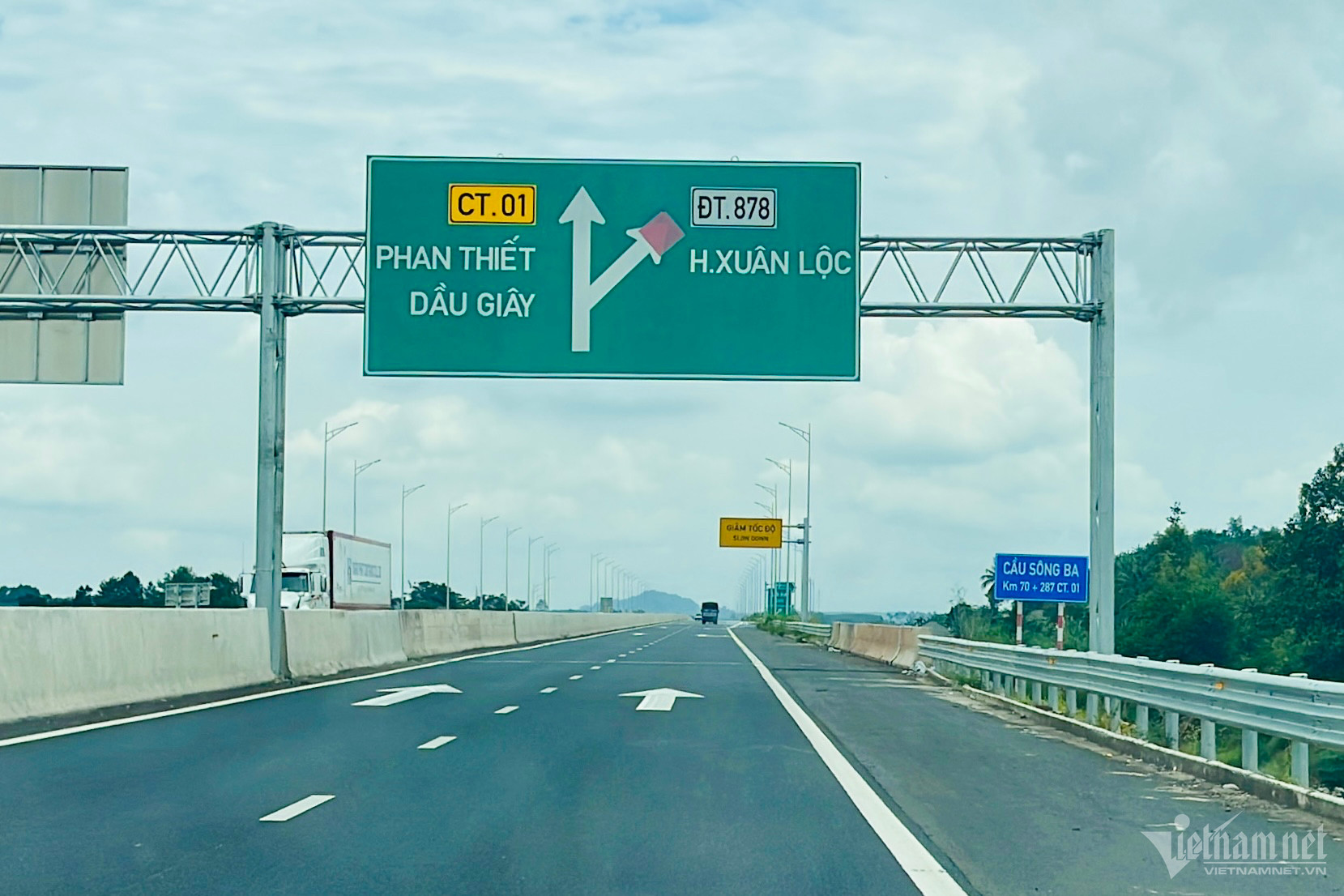 Ghi nhận của PV VietNamNet, ngày 9/11, tại điểm giao giữa cao tốc Phan Thiết - Dầu Giây với đường ĐT765 hướng từ Đồng Nai đi Bình Thuận, trước nút giao có biển báo chỉ rõ đi thẳng là cao tốc CT01 (Phan Thiết – Dầu Giây), lối ra bên phải là đường ĐT878 (huyện Xuân Lộc).
