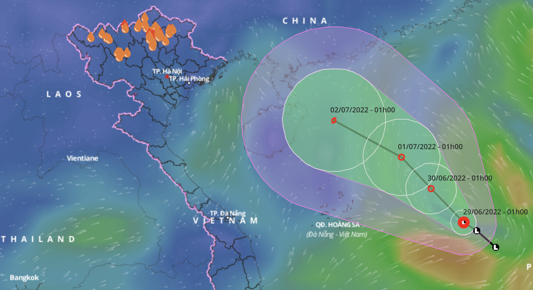 Vùng nguy hiểm trên Biển Đông trong 24-48 giờ tới (gió mạnh cấp 6 trở lên, giật từ cấp 8 trở lên) từ vĩ tuyến 16 đến 20,5 độ Vĩ Bắc; từ kinh tuyến 112 đến 117 độ Kinh Đông. Toàn bộ tàu thuyền hoạt động trong vùng nguy hiểm đều có nguy cơ cao chịu tác động của gió giật mạnh và sóng lớn.