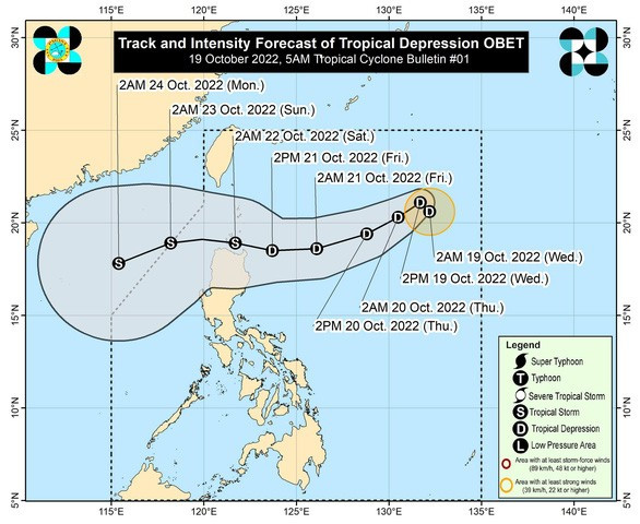 Theo Cơ quan Dịch vụ khí tượng, địa vật lý và thiên văn Philippines (Pagasa), vùng thấp hình thành trên khu vực vùng biển Thái Bình Dương phía đông Philippines ngày 19/10 đã phát triển thành hệ thống áp thấp nhiệt đới mới.