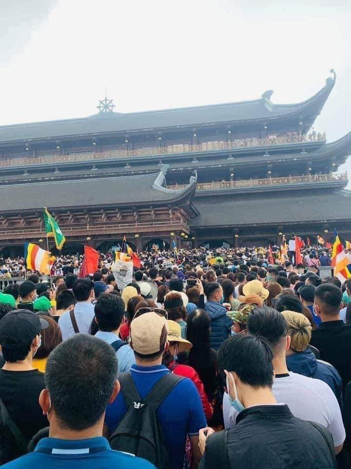 Ngày 14/3, cảnh đông đúc tại chùa Tam Chúc vào trưa cùng ngày đã xuất hiện trên mạng xã hội.