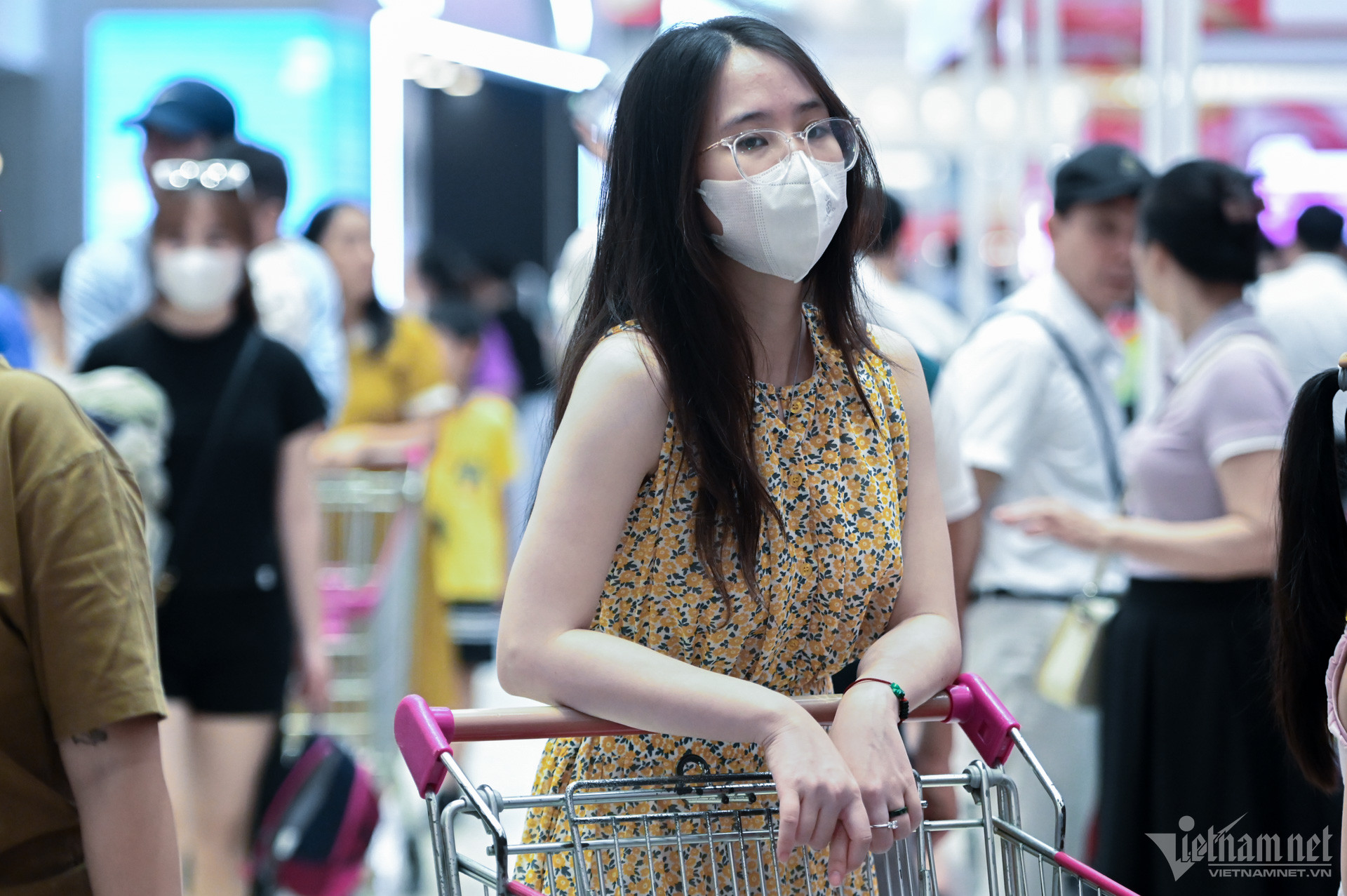 Sức nóng buổi trưa hầm hập khiến nhiều người nhăn nhó, che chắn kín mít khi ra ngoài trời. 13h, khách vẫn đổ về TTTM.