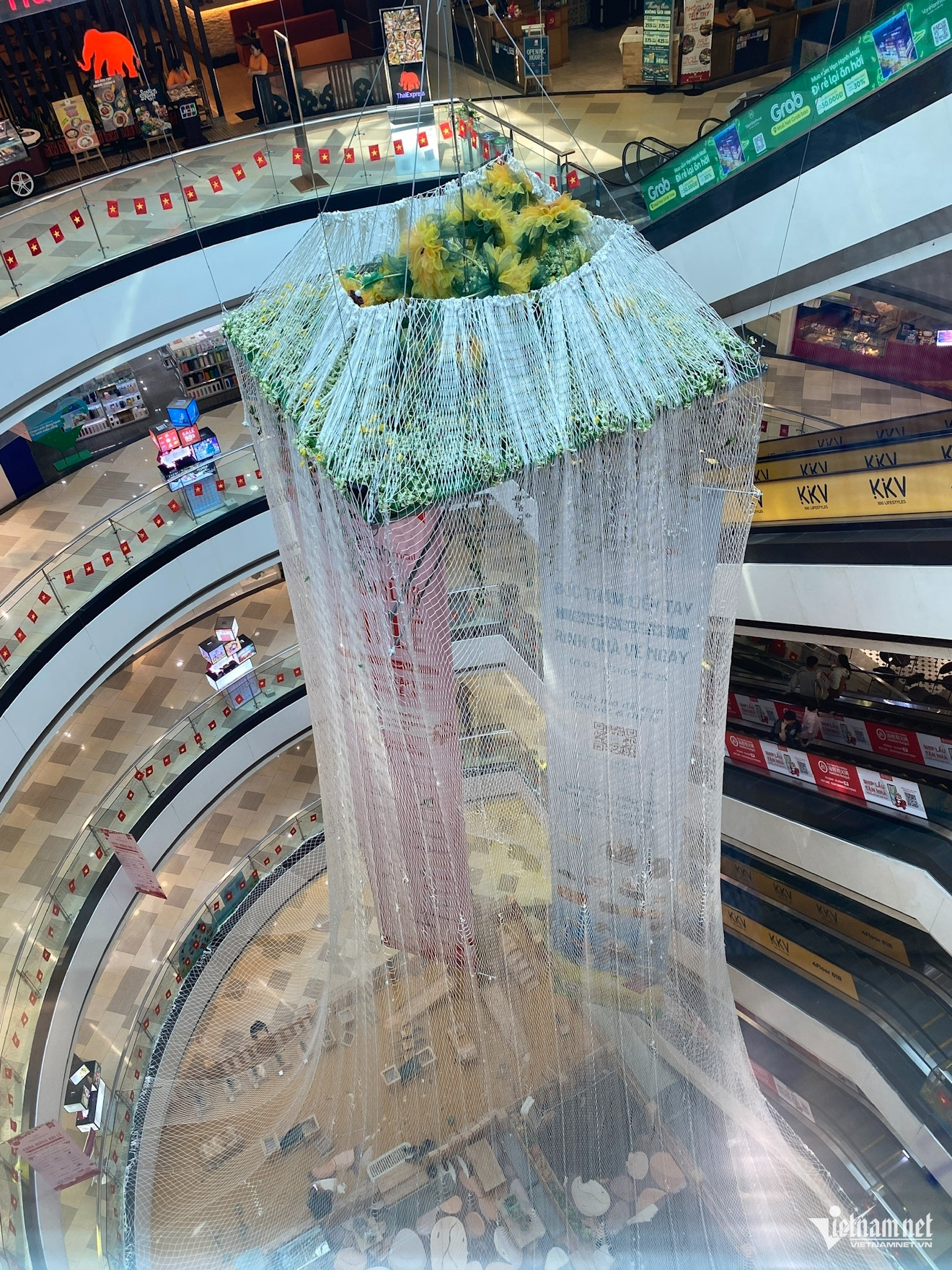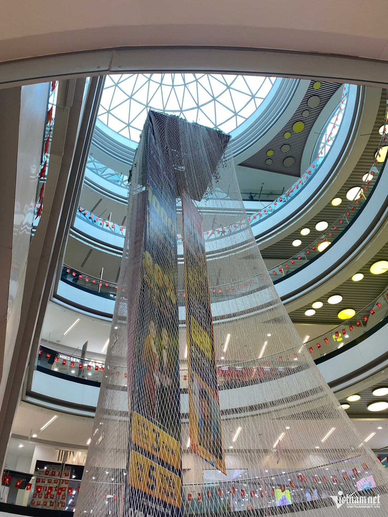 Theo đó, khu vực 2 khoảng không thông tầng (hay còn gọi là giếng trời lấy sáng tự nhiên) hình nón cụt của Vạn Hạnh Mall đã được giăng kín bằng lưới rào chắn, với phần đáy được siết chặt vào tường ở tầng 1.