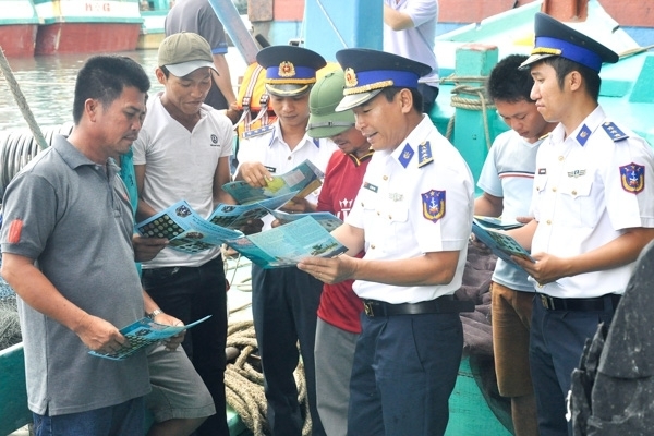 Vùng Cảnh sát biển 2 phát 100 cuốn Luật Cảnh sát biển Việt Nam cho bà con ngư dân xã Hải Khê