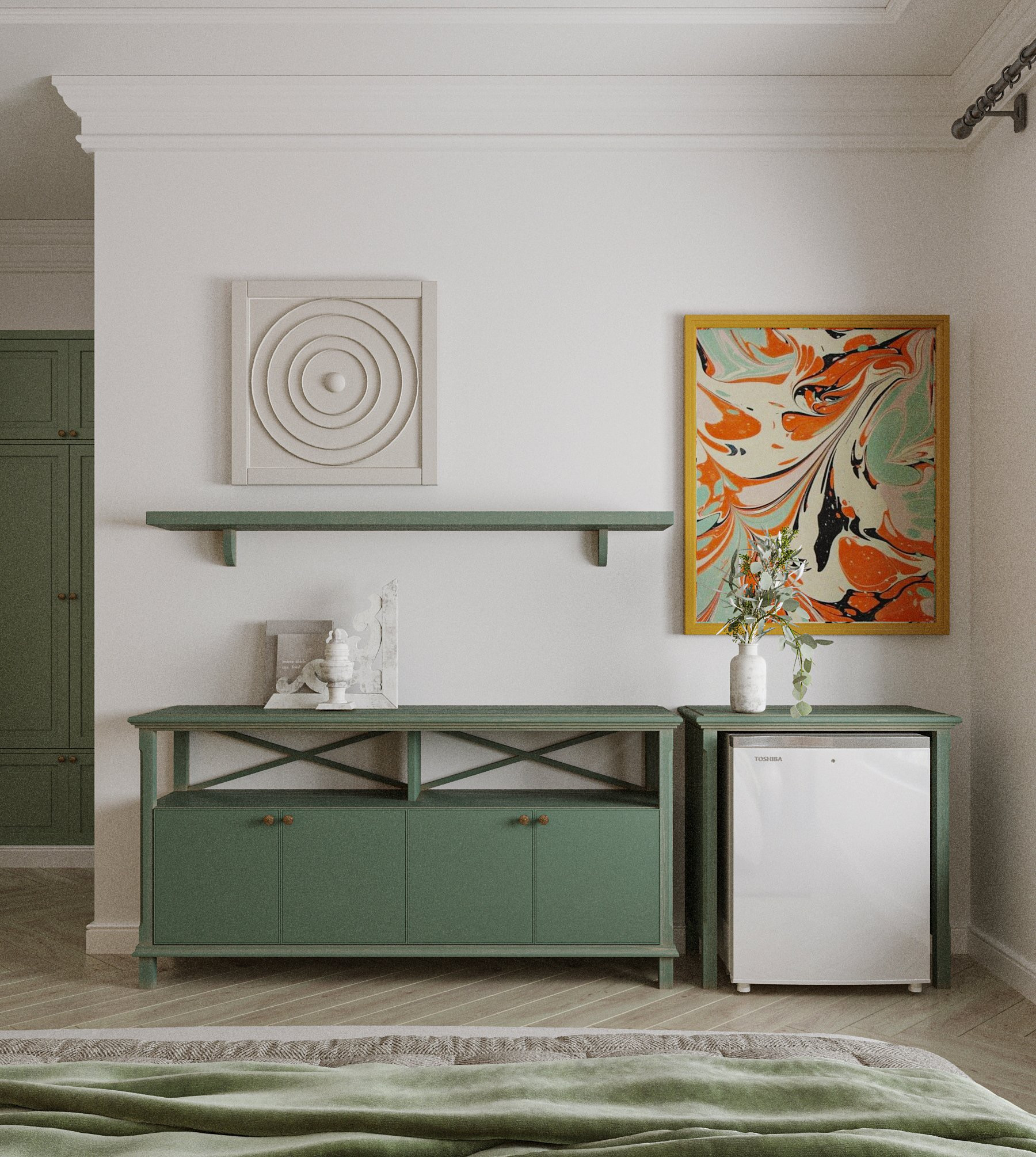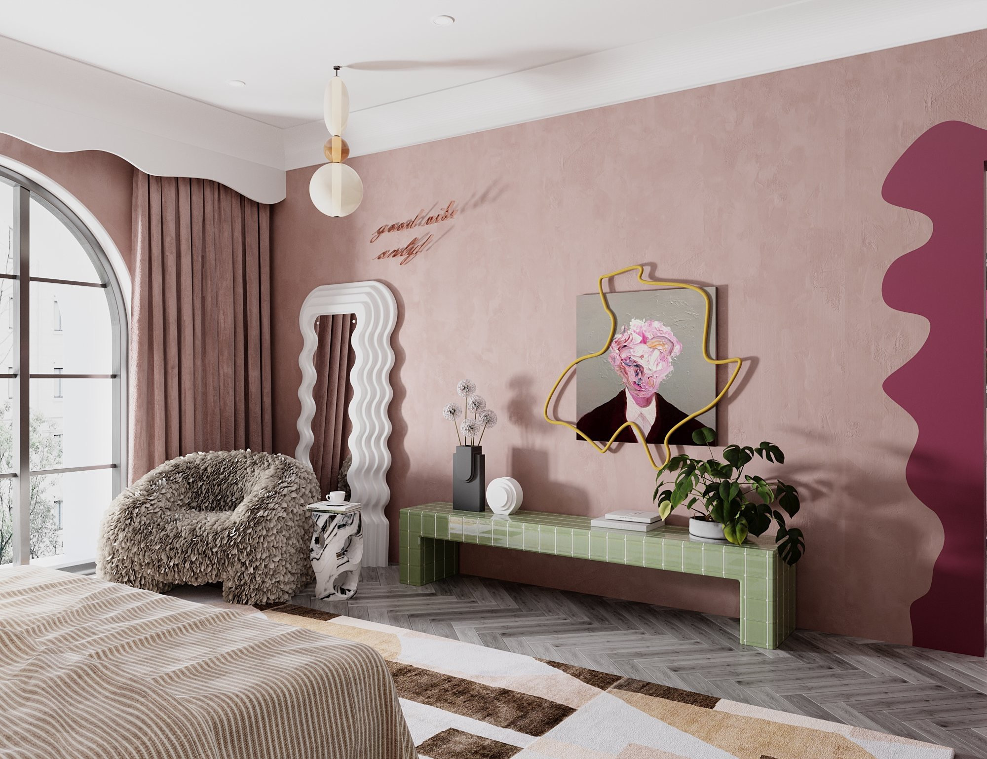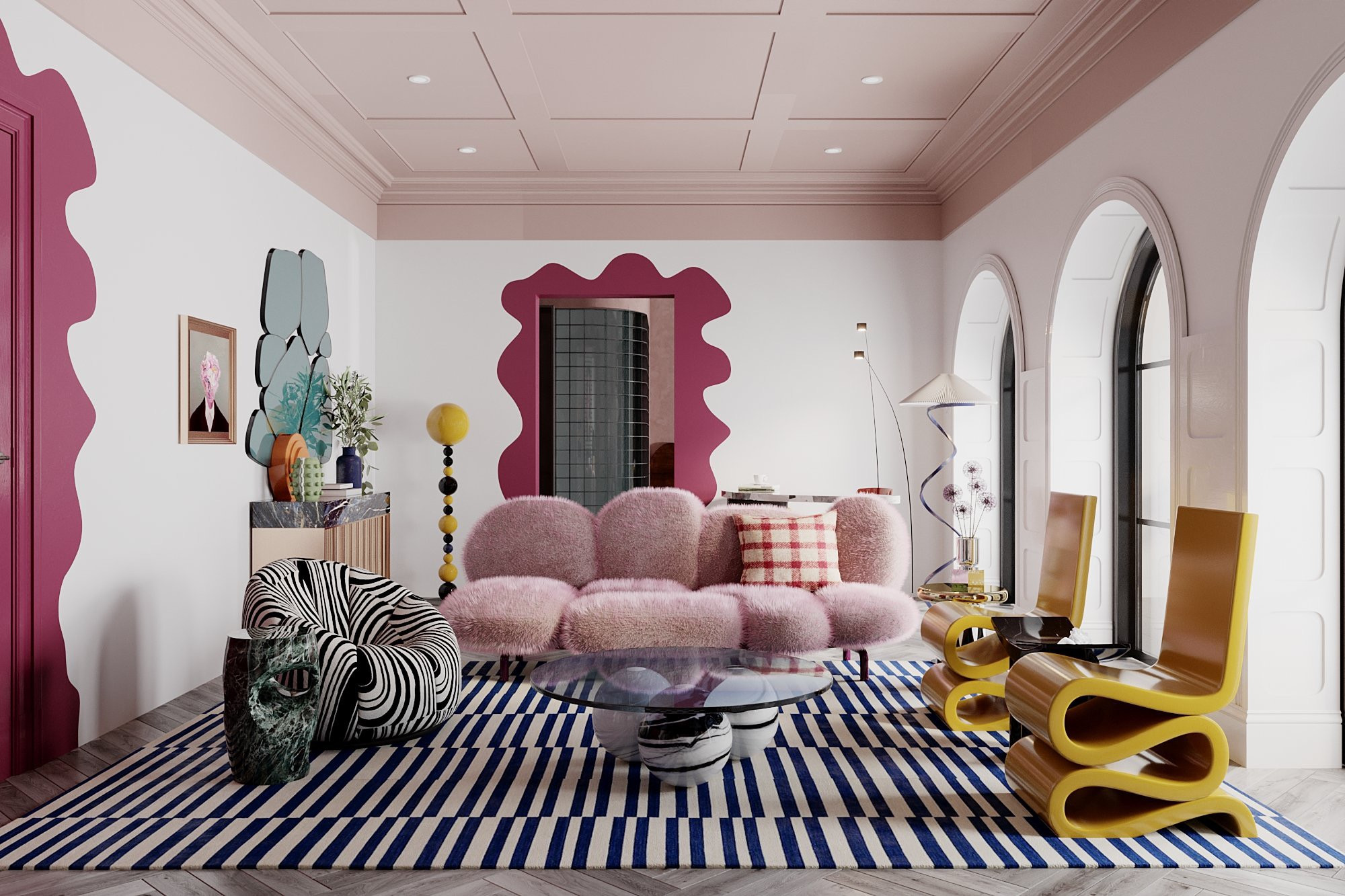Nội thất độc đáo, khác lạ với những đường cong, hình khối không theo quy luật cụ thể. Gam màu đối lập đưa đến vẻ đẹp ấn tượng.
