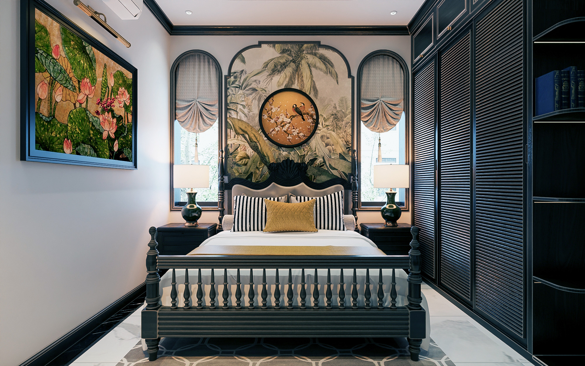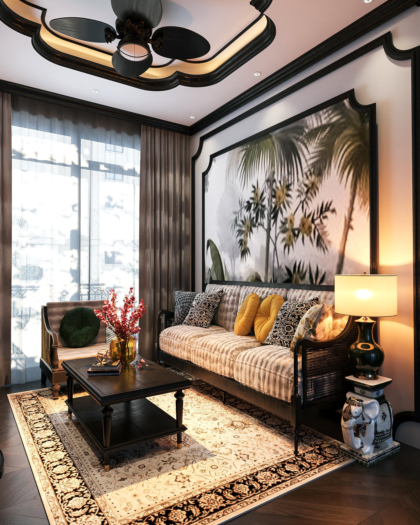 Phong cách này đậm chất nghệ thuật với họa tiết ở nội thất, tranh tường và đồ decor. Ngoại cảnh bên ngoài được chăm chút tỉ mẩn, đảm bảo nhiều cây xanh lọc bụi, thông thoáng với khuôn viên đi dạo, thư giãn.