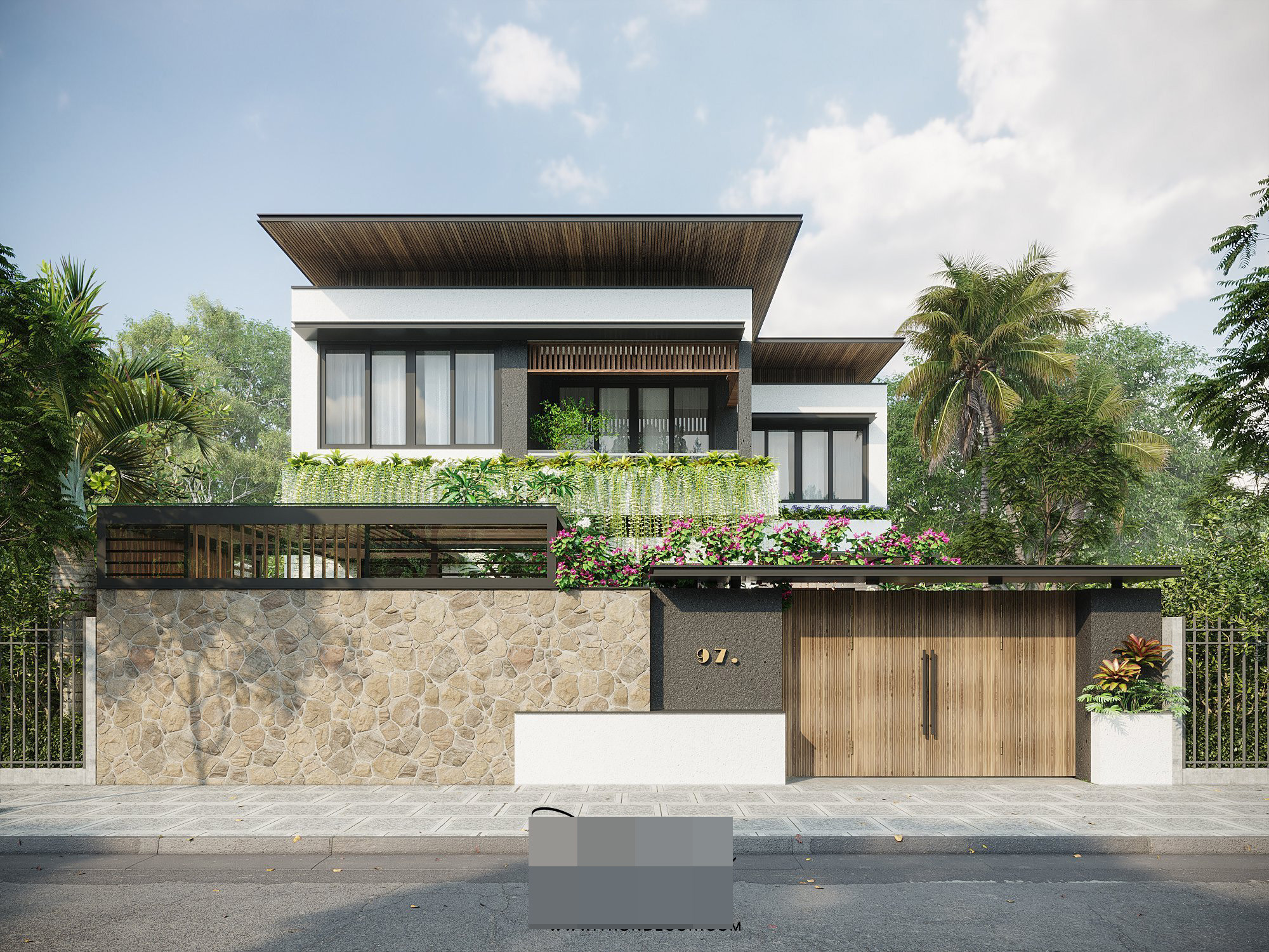 Khu vực chức năng của biệt thự bao gồm phòng khách, 2 phòng bếp, phòng ăn, 3 phòng ngủ, 1 phòng đọc sách và 1 phòng kho. Vật liệu chủ đạo bao gồm gỗ, đá tự nhiên, bê-tông được ứng dụng xuyên suốt, tạo điểm nhấn tự nhiên cho các khoảng tường màu trắng và gợi cảm giác ấm cúng, thân thuộc.