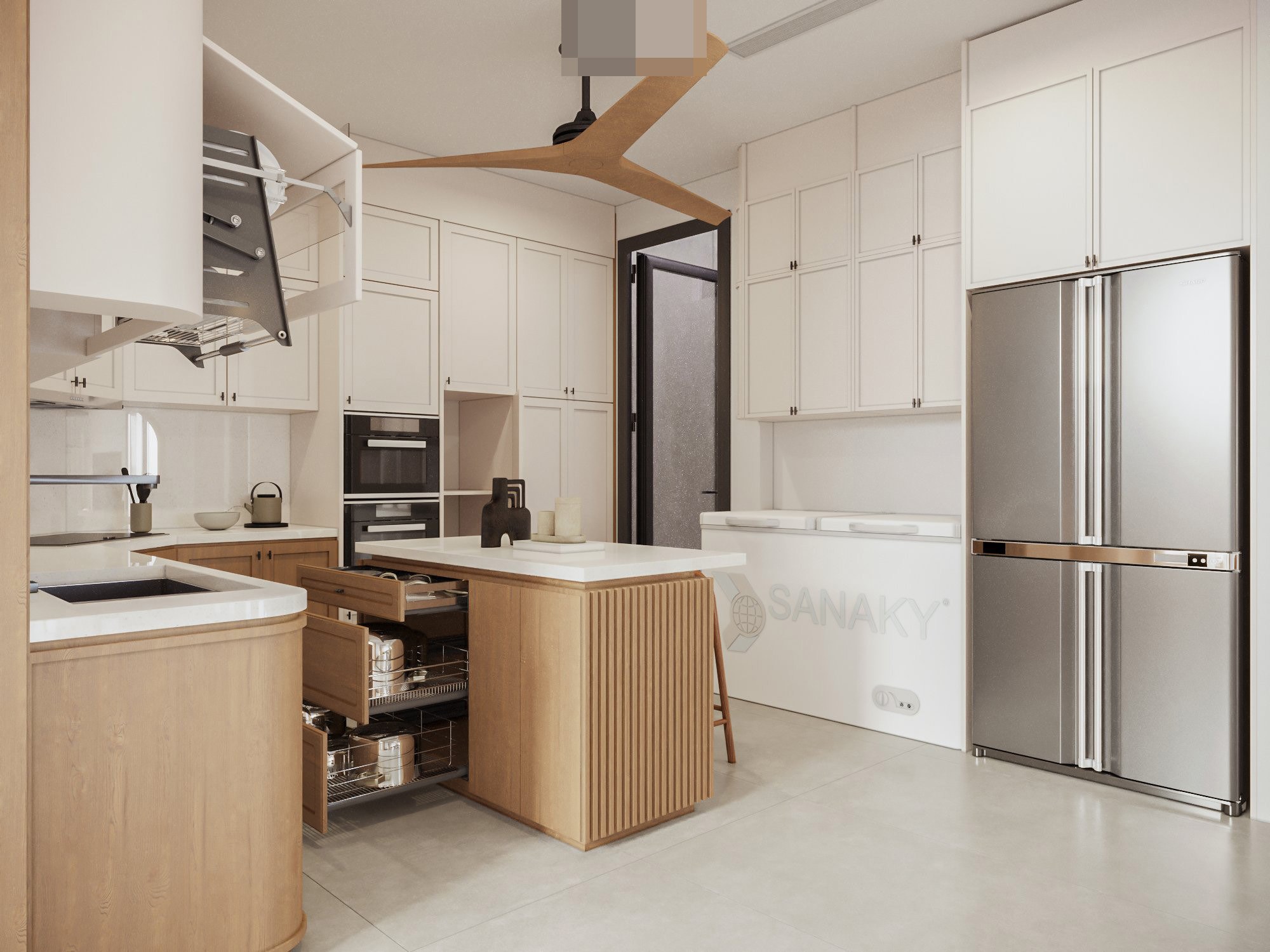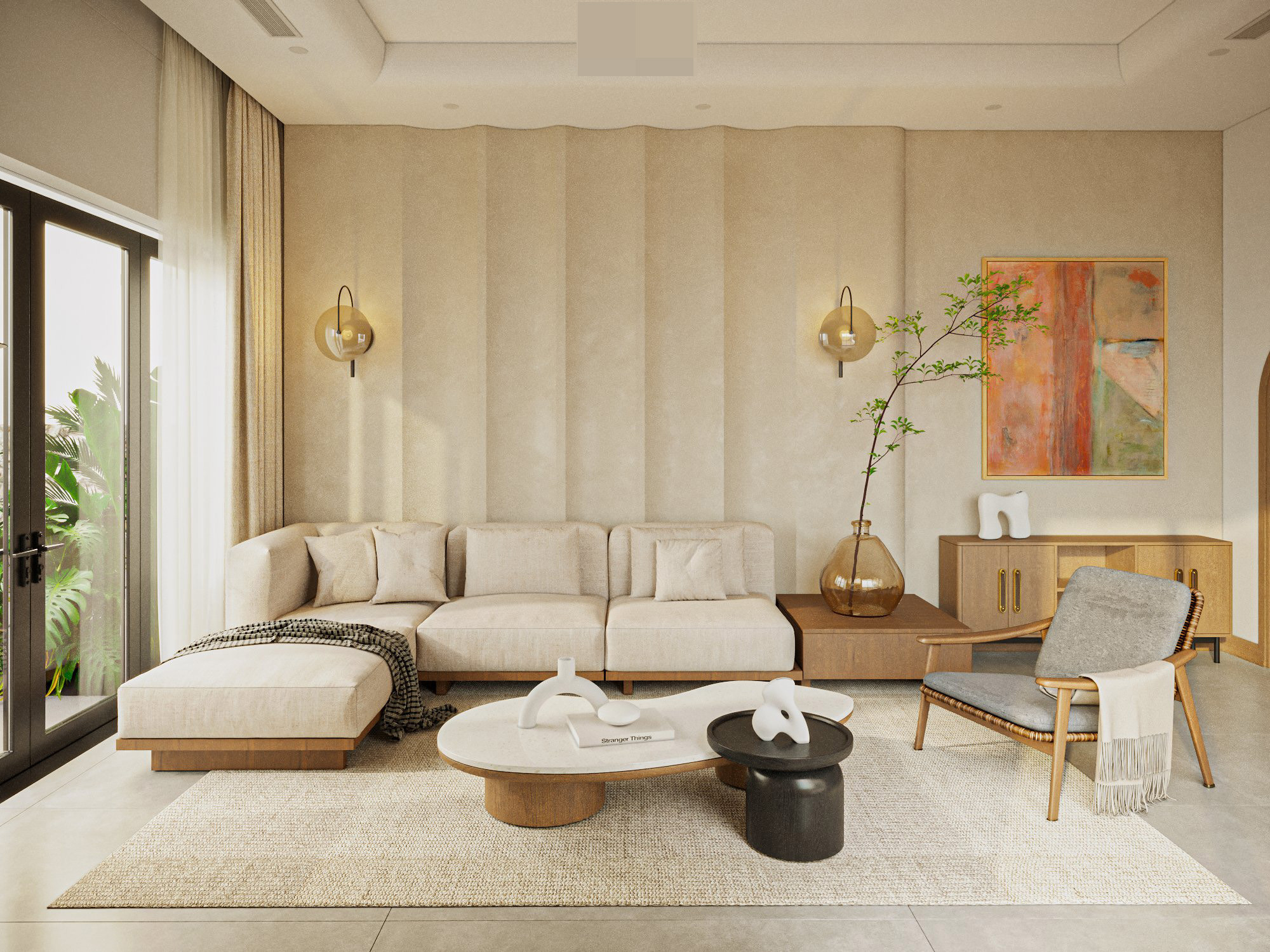 Phong cách nội thất japandi là cảm hứng sáng tạo cho không gian. Phong cách này kết hợp chủ nghĩa tối giản của bắc Âu với đặc tính của một nền văn hóa nội thất Nhật Bản đầy tinh tế. Thiên nhiên len lỏi vào từng ngóc ngách ngôi nhà, xen lẫn trong các khu vực chức năng.