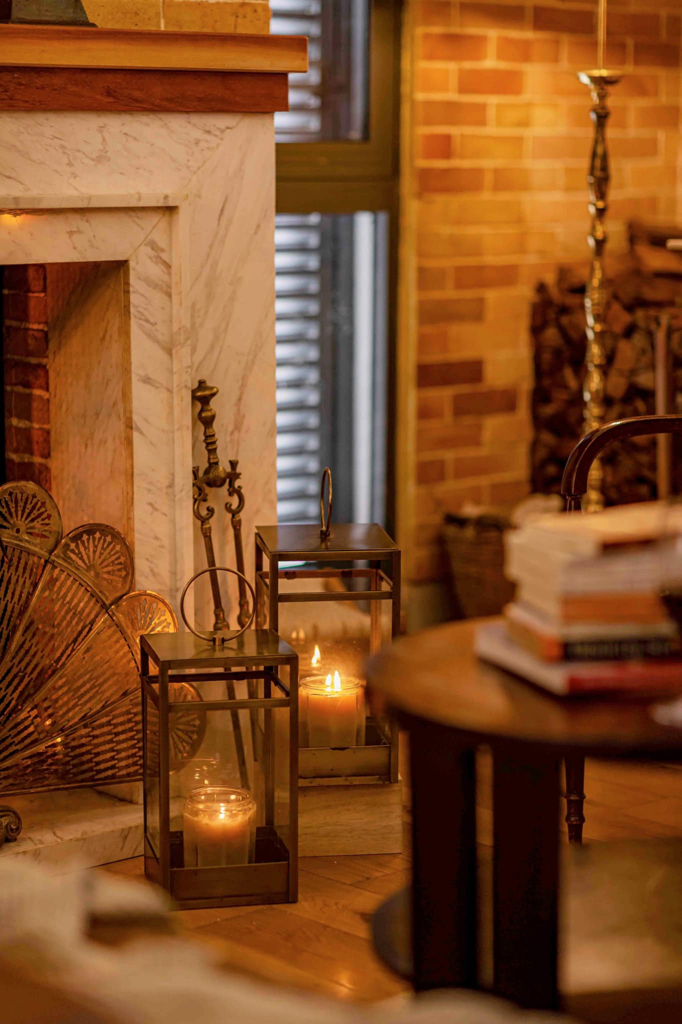Nội thất mang màu xưa cũ, cổ điển và rất ấm áp. Tông vàng của đèn và nâu trầm của nội thất mang đến sự ấm cúng, an yên.