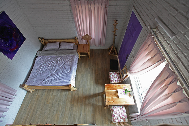 | Ngoài gian nhà chính, chị Tâm xây 5 gian nhà phụ mang màu sắc: xanh, đỏ, tím, vàng, hồng. Các dãy nhà này dành cho các con, bạn bè và người thân ở xa đến chơi. Trung bình mỗi gian nhà rộng khoảng 30 m2 chứa được 4 - 6 người. Gian nhà có đầy đủ bếp, công trình phụ khép kín và 1 gác xép nhỏ. |