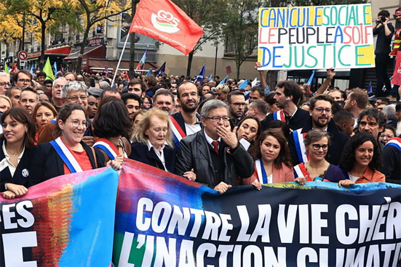 Theo đài RT, cuộc biểu tình ngày 16/10 do cựu ứng cử viên tổng thống Jean-Luc Melenchon, lãnh đạo đảng cánh tả Nước Pháp bất khuất (LFI) tổ chức. Một số tổ chức và đảng cánh tả khác đã tham gia, với một số kêu gọi Tổng thống Emmanuel Macron phải hành động mạnh mẽ hơn để chống lại biến đổi khí hậu.