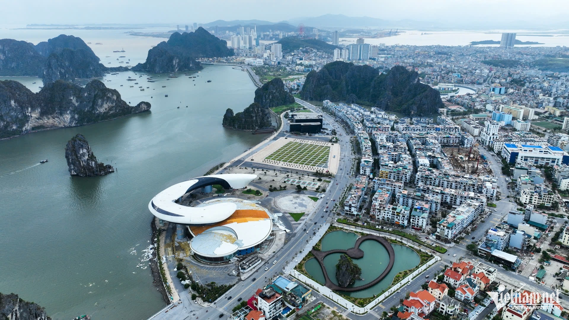 Nằm ở vị trí sát biển, Cung Quy hoạch Hội chợ và Triển lãm tỉnh Quảng Ninh (tổng mức đầu tư 1.000 tỷ đồng) bị hư hại nặng sau khi bão số 3 đổ bộ. Công trình được người dân địa phương gọi là “Cung cá heo” vì nhìn từ trên cao giống loài cá này đang bơi.