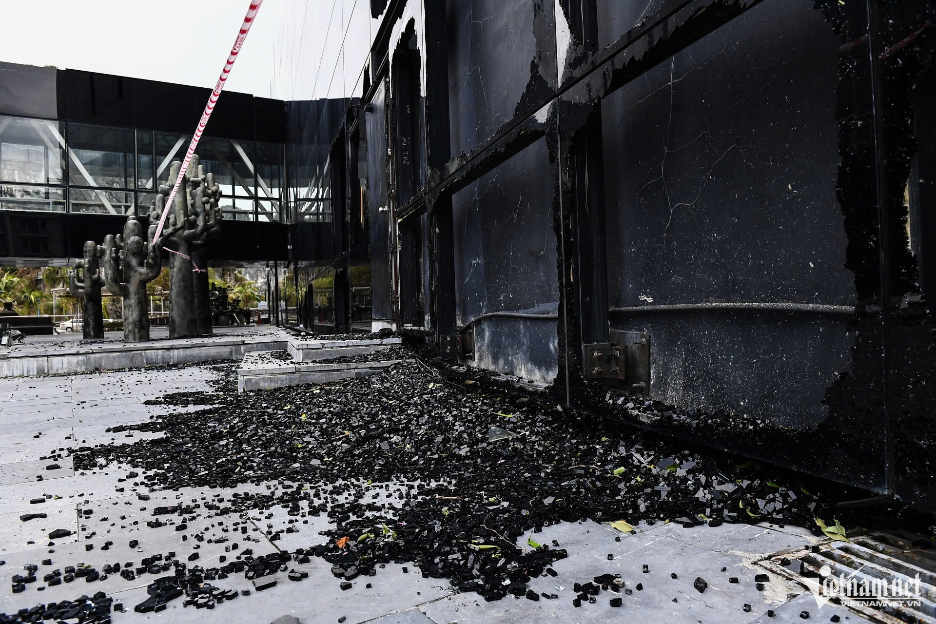 Sau 1 ngày bị bão số 3 quần thảo, hiện tại Cung cá heo vẫn đang trong trình trạng ngổn ngang. Lớp kính cường lực bị va đập vỡ tan tành, mảnh kính sắc nhọn phủ đầy bên trong khu vực tổ chức hội chợ.