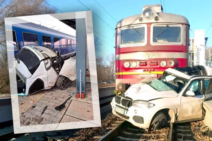 BULGARIA - Tài xế đã phớt lờ cảnh báo và cố gắng vượt qua barie đường ngang khiến chiếc xe BMW X5 bị đoàn tàu xẻ làm hai phần. May mắn, nam tài xế trẻ tuổi đã không bị thương nặng sau cú tông kinh hoàng trên.
