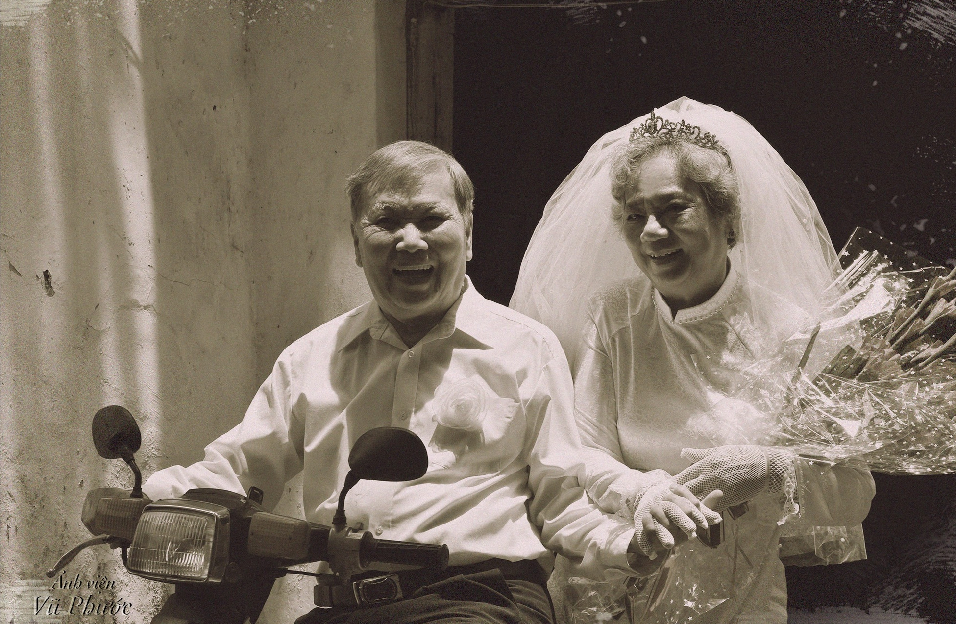 Sau khi hoàn thành buổi chụp ảnh, ông Toàn và vợ rất vui. Đặc biệt, khi được cầm bộ ảnh trên tay, ông bà rất xúc động. Cả hai như sống lại ngày vui của mình từ 50 năm trước.